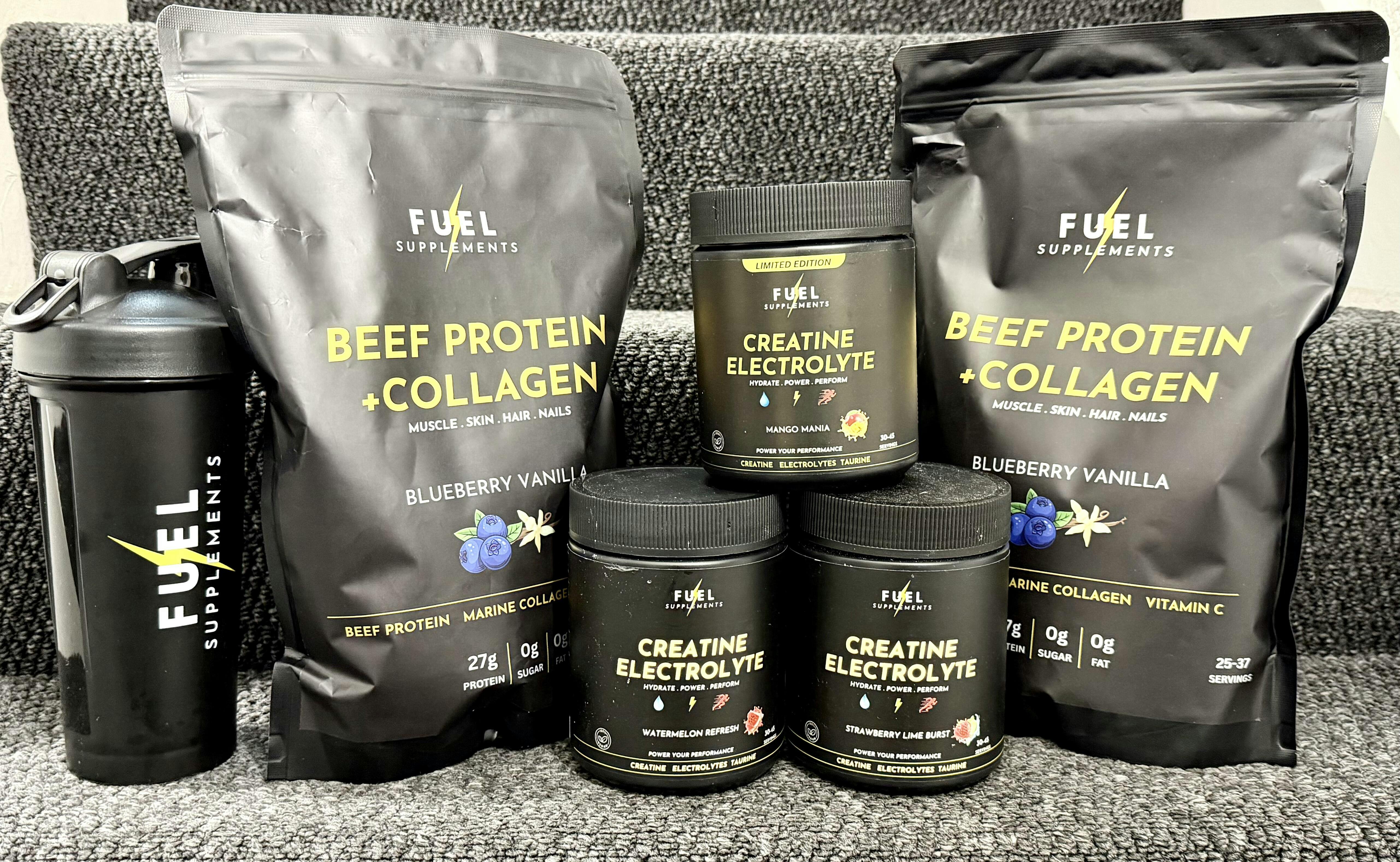 Beef Protein + Marine Collagen. This powerhouse blend harnesses beef protein to trigger muscle growth and accelerate post-workout recovery, paired with marine collagen to reinforce joints, ligaments, and skin resilience. Vitamin C amplifies collagen synthesis and strengthens your body's defence systems. Engineered for serious athletes who train hard and demand tangible performance gains. Mix, consume, transform.